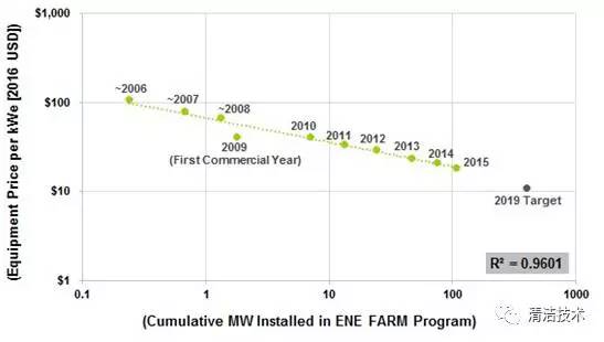 下面我们就来分析一下燃料电池微电网技术的财政优势:根据Navigant研究,随着产量的提升以及经济规模的壮大,燃料电池成本呈现逐步下降趋势。Navigant研究发现固定式燃料电池的成本下降速度明显快于风能并且与太阳能成本下降速度保持在同一水平。燃料电池微电网的低成本投入将会获得更快的成本回收周期。