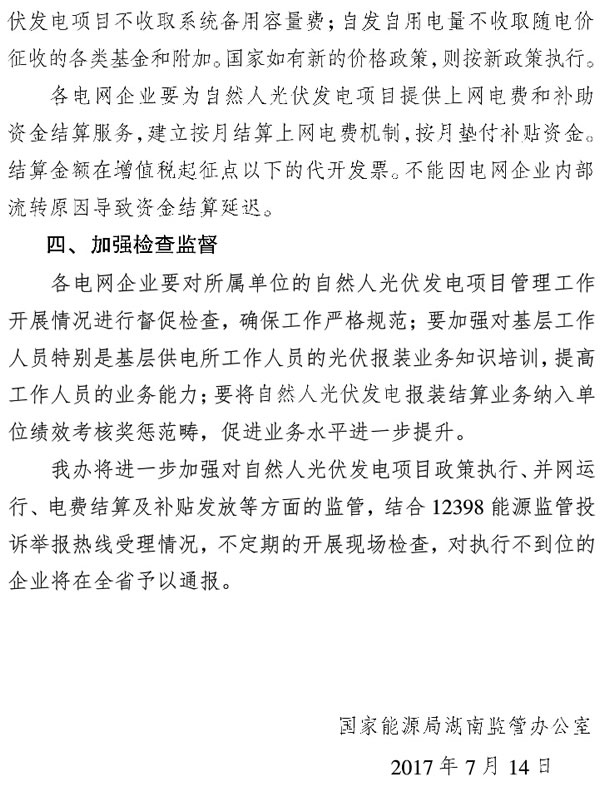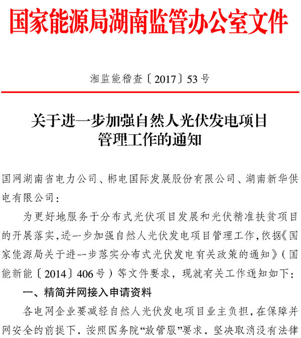 湖南能监办关于进一步加强自然人光伏发电项目管理工作的通知