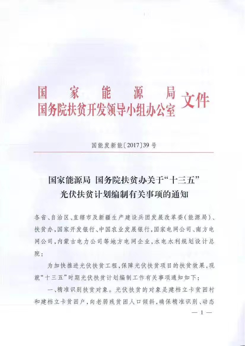 重磅 | 国家能源局扶贫办《十三五光伏扶贫计划编制有关事项的通知》