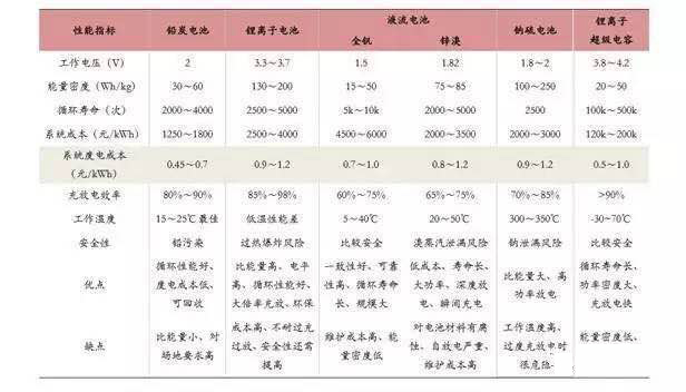 (主流储能电池性能指标比较 )