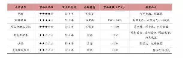 目前我国储能行业的处于刚起步。随着下游需求的爆发式增长,储能的商业化应用也愈加迫切。2015年之前,项目以示范应用为主,集中在可再生能源并网、调频辅助服务、电力输配、分布式发及微电网、电动汽车光储式充电站;2015年-2020年,开始出现若干初具商业化但还不备规模的项目,逐步向商业化迈进;2020年之后,储能将逐步在各个领域实现商业化发展。