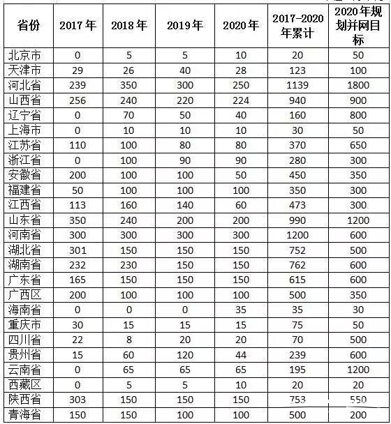 2017-2020年风电新增建设规模方案单位:万千瓦