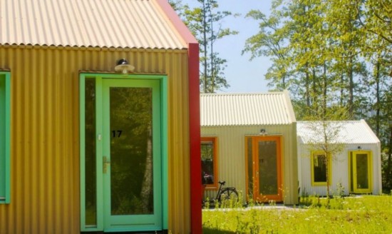 外墙材料为波纹钢,每栋住宅颜色不一,有漂亮的窗台