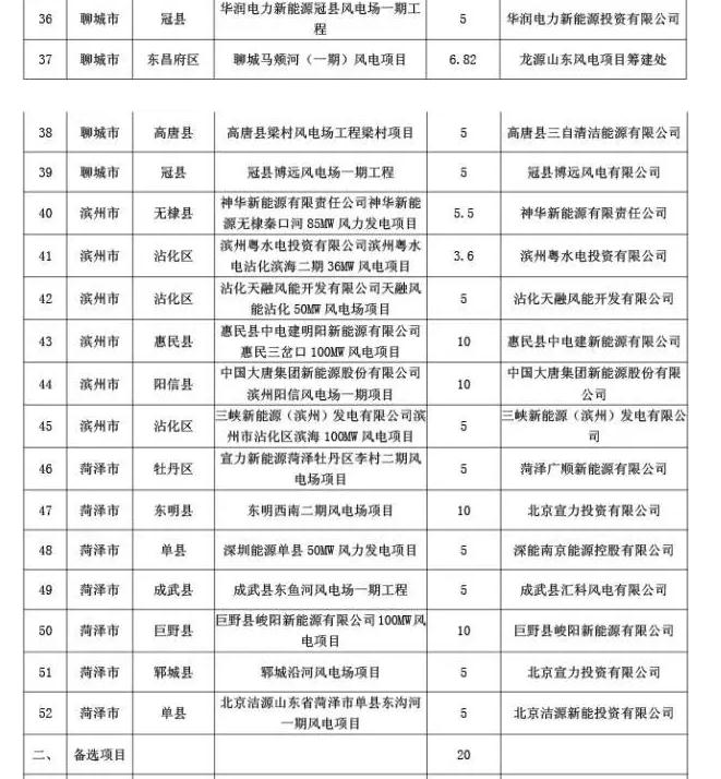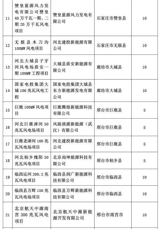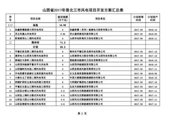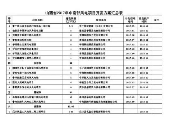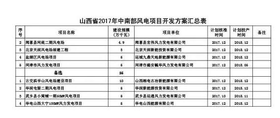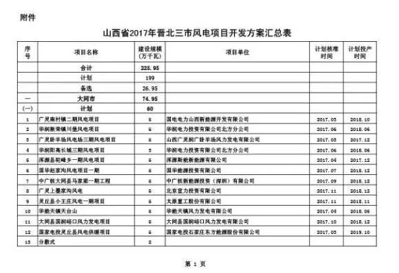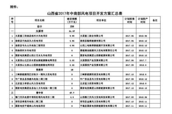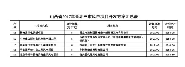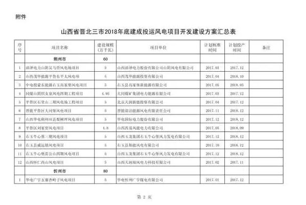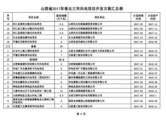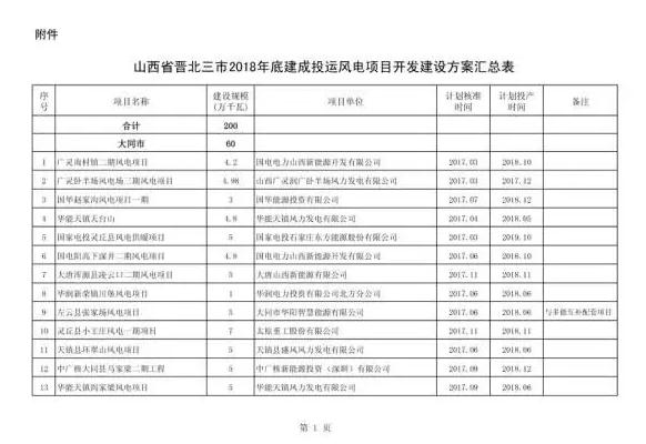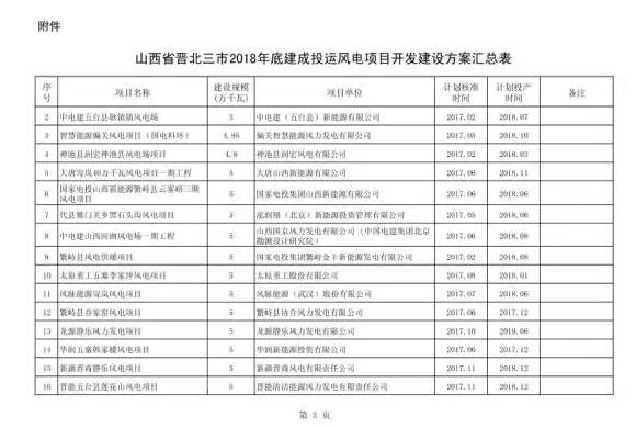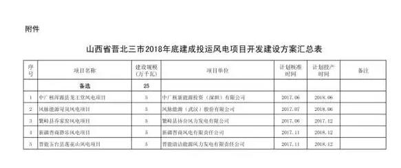 山西省晋北三市2018年底建成投运风电开发建设方案汇总表