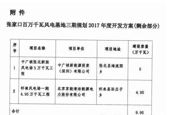 张家口百万千瓦风电基地三期规划2017年度开发方案