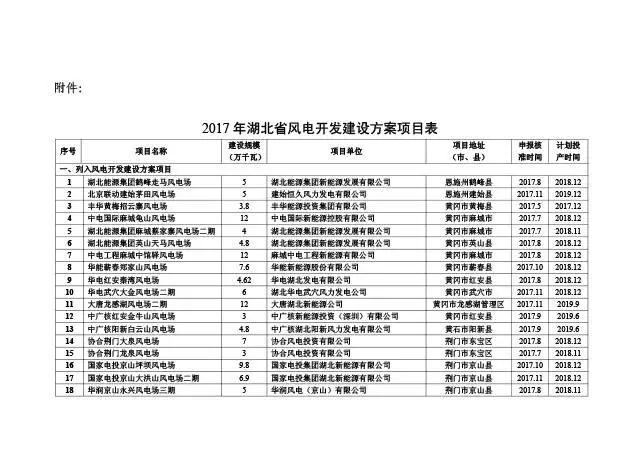 2017年湖南规划:2017年湖南拟开发建设风电项目45个,装机227万千瓦,另有31个、152万千瓦作为备选项目。