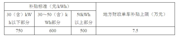100≤R<150公里(R为标准工况续驶里程,单位:公里,下同)1万元/辆,150≤R<250公里1.8万元/辆,R≥250公里2.2万元/辆。