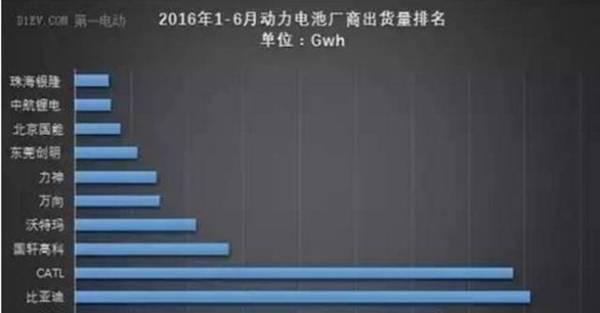 2016年上半年,宁德时代在动力电池领域的营业额达到35亿元,其国内的竞争对手比亚迪营业额为45亿元。在全球动力电池市场,松下凭借与特斯拉的战略合作,牢牢保持NO.1的地位,比亚迪次之,宁德时代已超越LG化学位居全球第三。