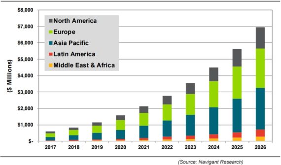 Navigant预测,到2026年欧洲将拥有最大的智能路灯安装基数,其次是亚太和北美。