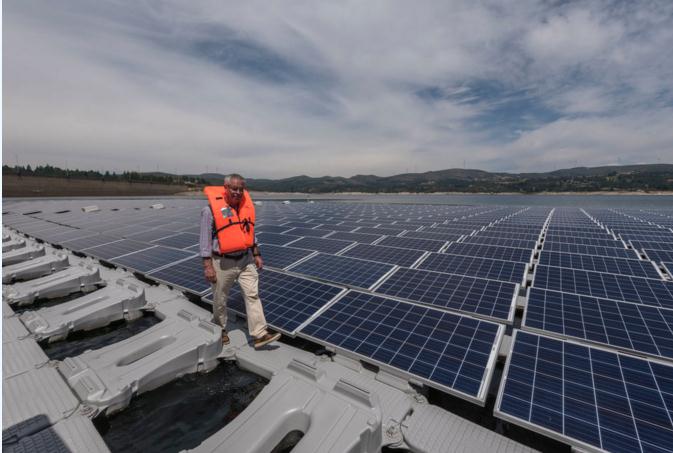 此外,这些浮式太阳能电池都是环保型产品,由可回收材料制成,帮助减少水分蒸发,延缓藻类生长,通过屏蔽水分减少水库内部的波浪,从而减少水库的侵蚀。