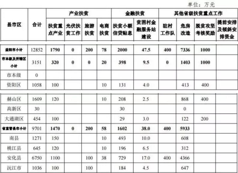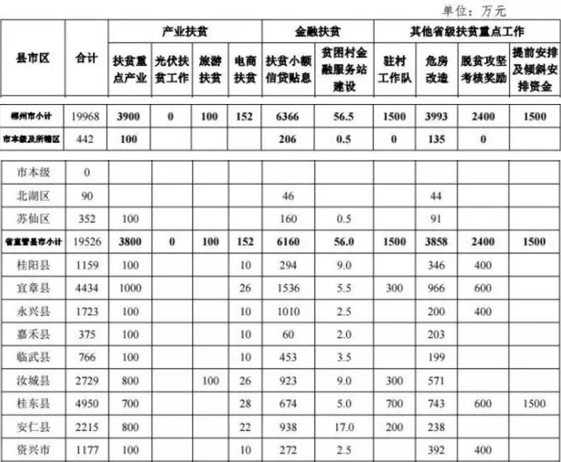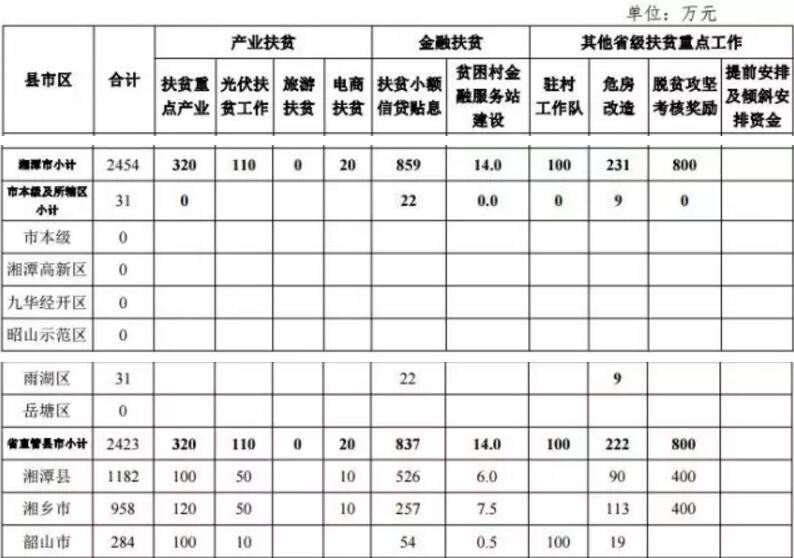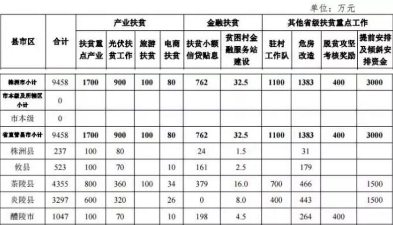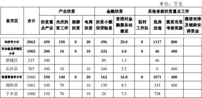 其中,扶贫重点工作资金计划合计为22.2亿元,资金已由省财政 厅下达(湘财预〔2017〕74、86 号)。