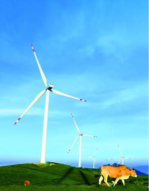 如今,在浙江的风力发电场内,一台台“风车”高擎入云,鸟儿飞,植被绿,“风车”与碧海蓝天交相辉映,共同勾勒出一幅精美和谐的画卷。