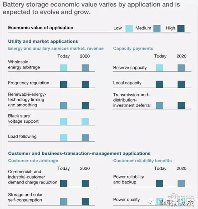 电池存储的类型、位置、网路需求、法规、负载、速率结构和应用性质是由用户类型决定的,既可以布局于电网系统,又可以用于个体消费,包括家庭或企业,价值流形式更为灵活。麦肯锡指出,目前的电池存储技术已经投入一些消费市场应用,并在不断扩大应用规模。