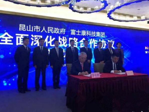 6月23日下午,富士康科技集团与江苏昆山签订“全面深化战略合作协议”。根据协议部署,富士康将在昆山投资建设光通讯连接模块/高速连接器、新能源电池、桦汉科技、富曜精密、智慧物联科技新城、KS-FIT双创/研发中心、废弃物处置及环境污染防治技术研发等7个项目。计划总投资250亿元,首期投资超80亿元。
