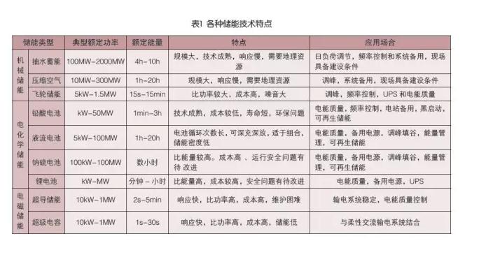 目前,储能技术路线主要分机械储能(包括抽水蓄能、压缩空气储能、飞轮储能等)、电化学储能(包括铅酸电池、锂离子电池、液流电池、钠硫电池等)和电磁储能(包括超导储能、超级电容器储能等)等几种,各种技术的特点如下表所示。