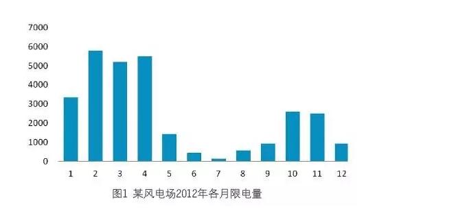 如图1所示,2012年限电最多的月份集中在2-4月,月限电量在52000MWh-57000MWh之间,限电最少的月份为7月,限电量1300MWh。