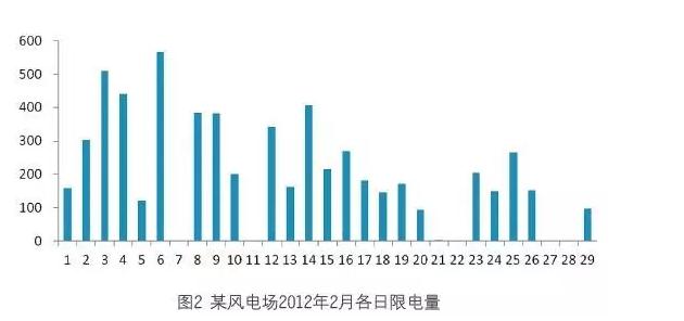 如图2所示,2012年2月限电最多的是6日,限电量为5650MWh。7、11、21、22、27、28日限电量为0kWh。