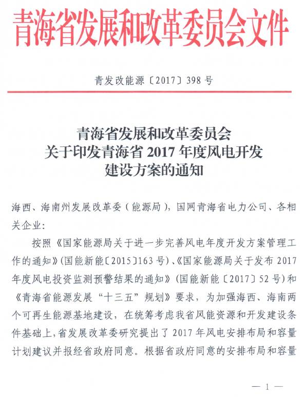 重大变革 必须搭配10%的储电装置!青海省2017年度3.3GW风电建设方案新规定!