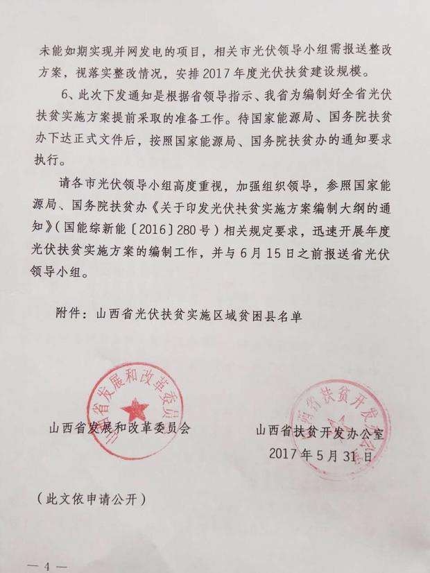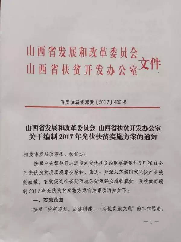 山西省发改委、扶贫办关于编制2017年光伏扶贫实施方案的通知