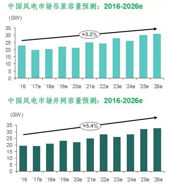 2017年二季度风电市场展望:全球风电新增容量十年预测上调10.8GW,未来五年内将实现上调预测容量的60%。