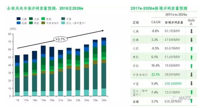 6月7日,丹麦可再生能源咨询机构MAKE发布《2017年第二季度风电市场展望报告》(以下简称:“报告”),着重对未来十年全球及各国家和地区的市场发展做出了预测。