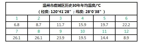 表 1:温州市鹿城区历史30年年平均气温(单位:℃)