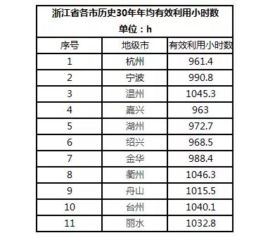 表4:浙江各地级市的年均有效利用小时数(单位:h)