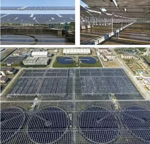 江西南昌青云水厂和红谷滩污水处理厂光伏项目,总装机容量5.3兆瓦。其利用水厂清水池、滤池屋顶以及反应沉淀池上方搭建网架结构铺设太阳能光伏组件进行发电。