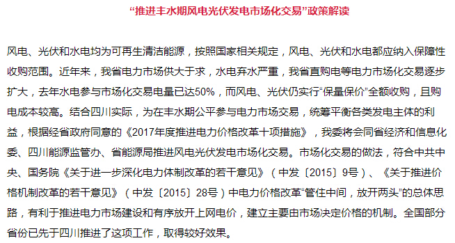 四川四部门联推电力交易:6-10月丰水期优先采购风电光伏