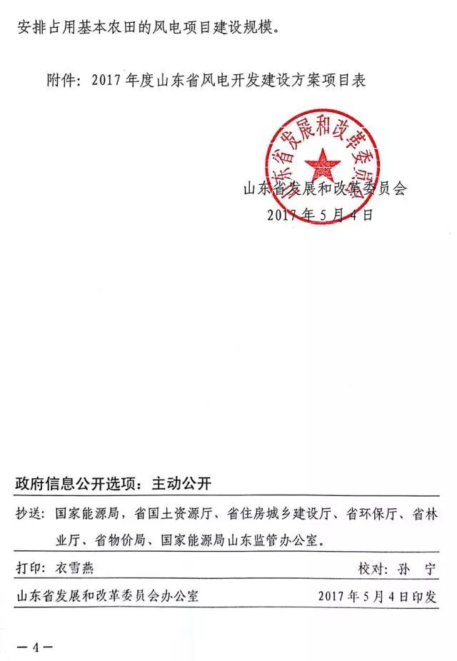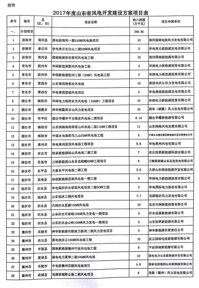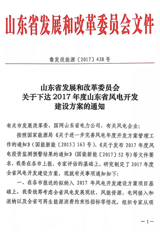 山东省发改革委关于下达2017年度山东省风电开发建设方案的通知