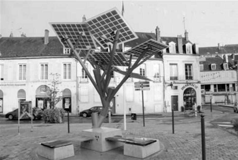 近日,法国中部城市讷韦尔市政厅前“种下”欧洲首棵电子树。这棵电子树高4.5米,叶片由光伏电池板制成,这种光伏板柔韧性强,7片“树叶”平均每天至少供应6千瓦时电量,并能承受时速170公里的强风和70厘米厚度的积雪。电子树给市民带来诸多便利,人们坐在树下,既可给手机、平板等电子设备充电,也可通过电子树发射的无线网信号免费高速上网,树中央的小水池可以提供饮用水,在夜晚电子树还能够为广场提供照明。