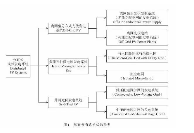 (1)根据并网特性与运行方式的不同,可分为并网光伏发电系统、离网型分布式光伏发电系统、多能互补微电网发电系统(见图1)。