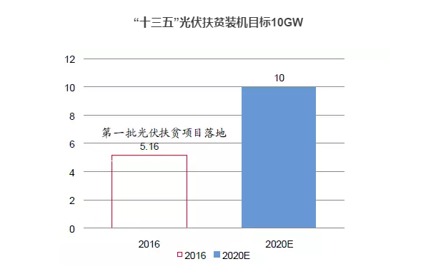 2016 年6 月,国家能源局在下发2016 年光伏新增装机目标之际,首次提出从2016 年起开始执行为期4 年的光伏扶贫计划,“十三五”期间光伏电站扶贫装机目标10GW,平均每年完成2GW 目标。