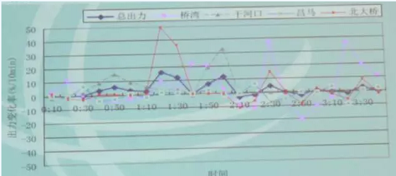 这个是从出力和四个典型风电厂,出力变化率的曲线,全省总的一大片地方,出力波动相对比较平缓,但是每一个单个的出力变化率都是很快的。