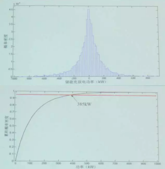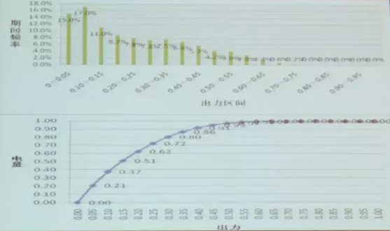 这个是出力概率分布区间和出力的变化率,在这个下面,如果说前面那个曲线看着比较不清晰,99%的概率条件下,最大出力实际上只有0.55,用一个通俗的话说,95%以上保证率条件下,出1千万的风电,最大出力小于550万的。上面是它的出力分布的概率一个区间。