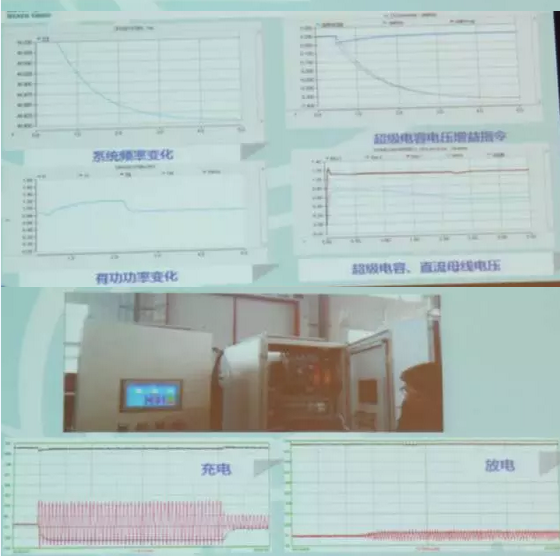 实际上我们这重点是一个超级电容和锂电池,通过锂电池研究希望提高它的可调度能力,超级电容主要提高它的支撑能力和其他的配合起来共同来改善风电并网的特性。我们最后项目的一个相当于一体化监控平台,把包含风电其他的控制以及锂电池储能和超级电容控制一体改造的控制的平台。实现了对整个风电厂多种功能集中的管控。这是风电机组加装超级电容,在风电机组的机舱里面,并且实现了原来预期一些功能。