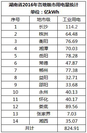 表 2:2016湖南省各地级市工业用电量统计(单位:亿kWh)