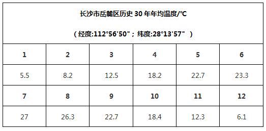 表 1:长沙市岳麓区历史30年年平均气温(单位:℃)