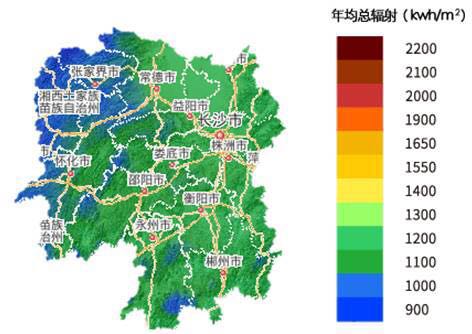 长沙市区属于太阳能资源“较丰富”地区,年均有效利用小时数较高,适合建设光伏电站。