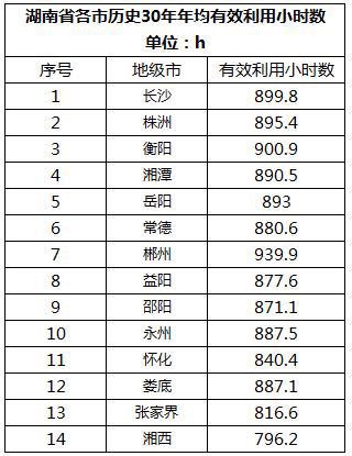 表 3:湖南省各地级市的年均有效利用小时数(单位:h)