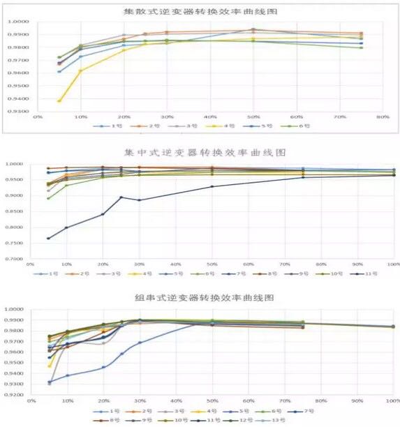 最大转换效率测试结果显示,集散式逆变器最大转换效率均值达99.08%,转换效率排名第一。
