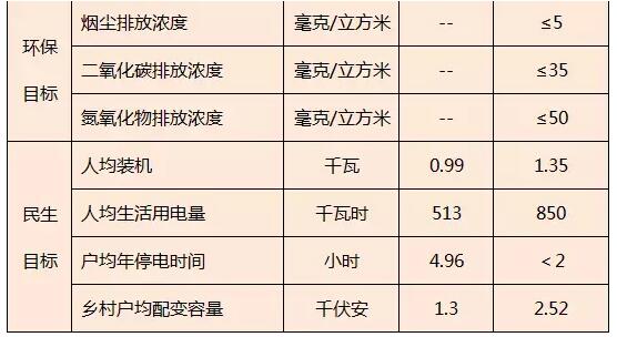 人均电力装机达到1.35千瓦,人均年生活用电量达到850千瓦时;户均年停电时间缩短至2小时以内,乡村户均配变容量达到2.52千伏安。
