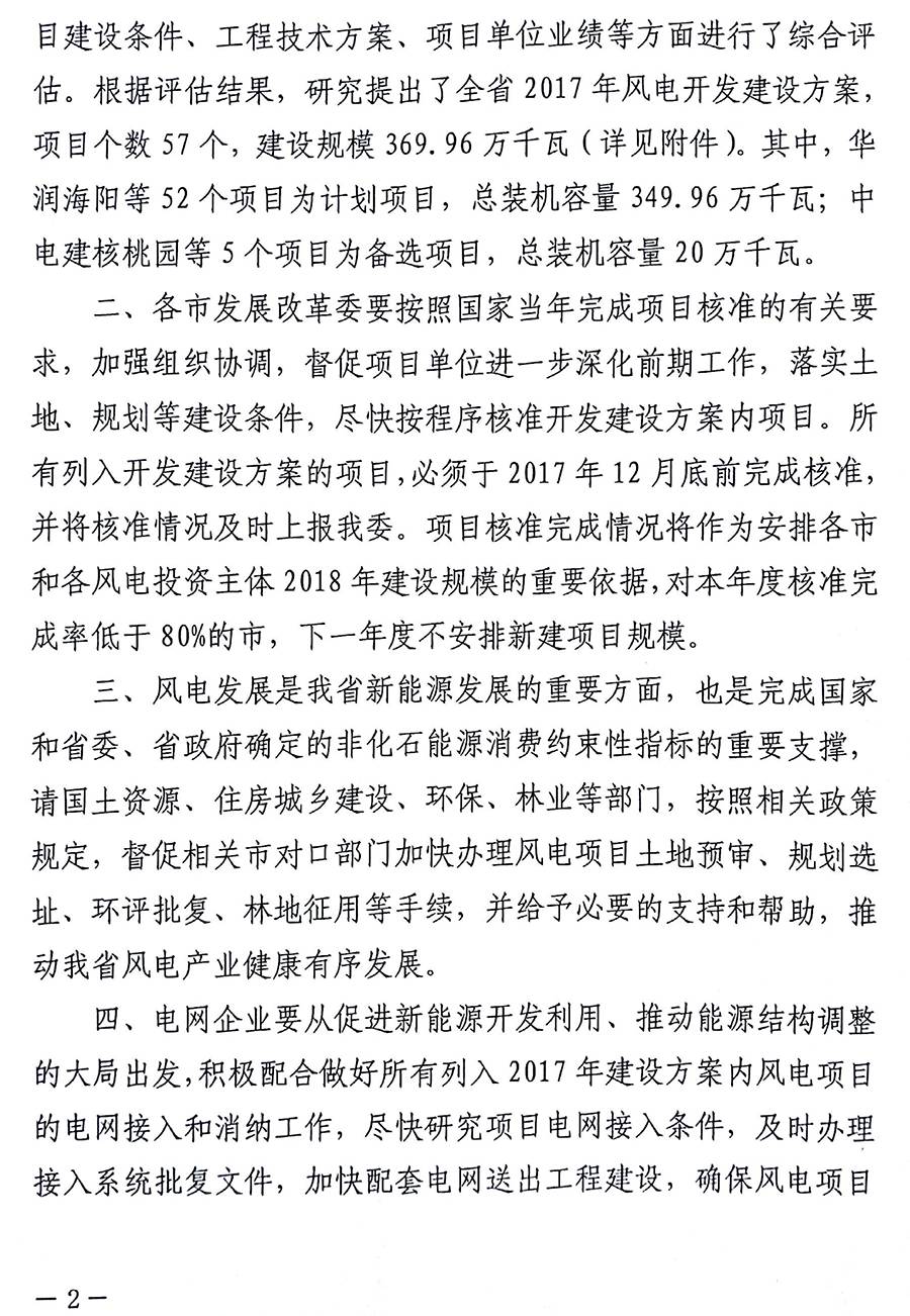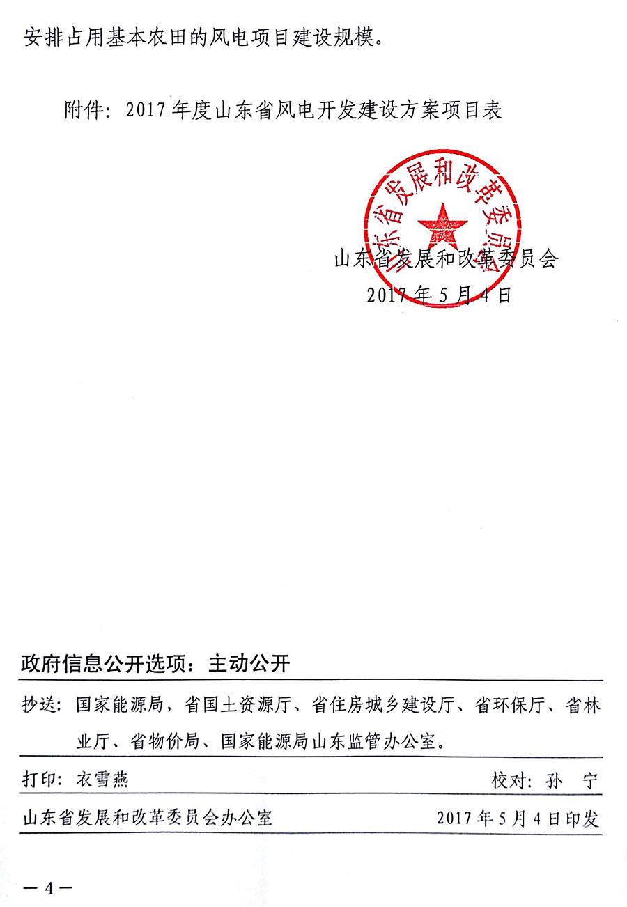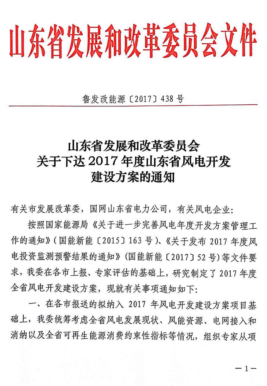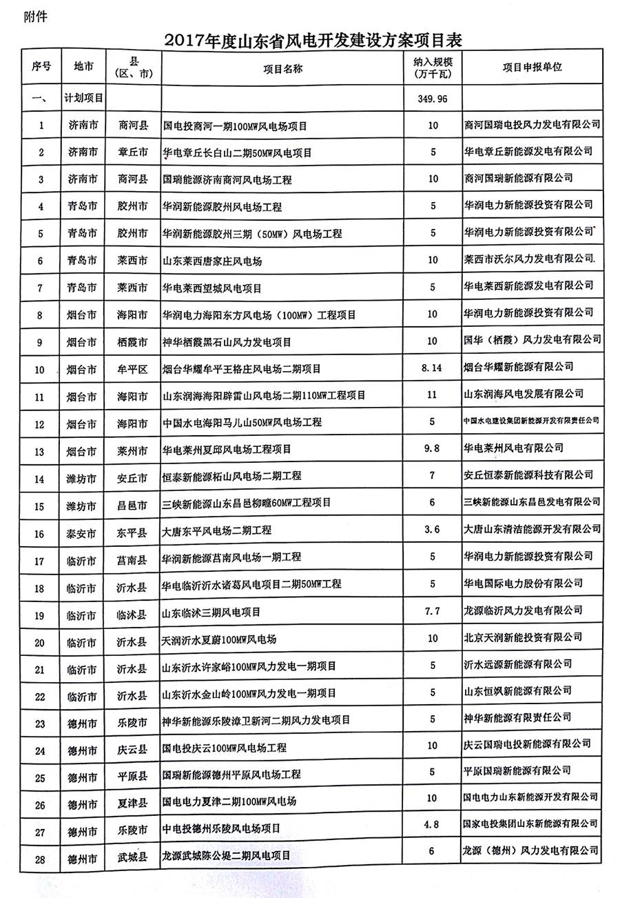山东省公布2017年风电开发建设方案:总计369.96万千瓦(附项目表)