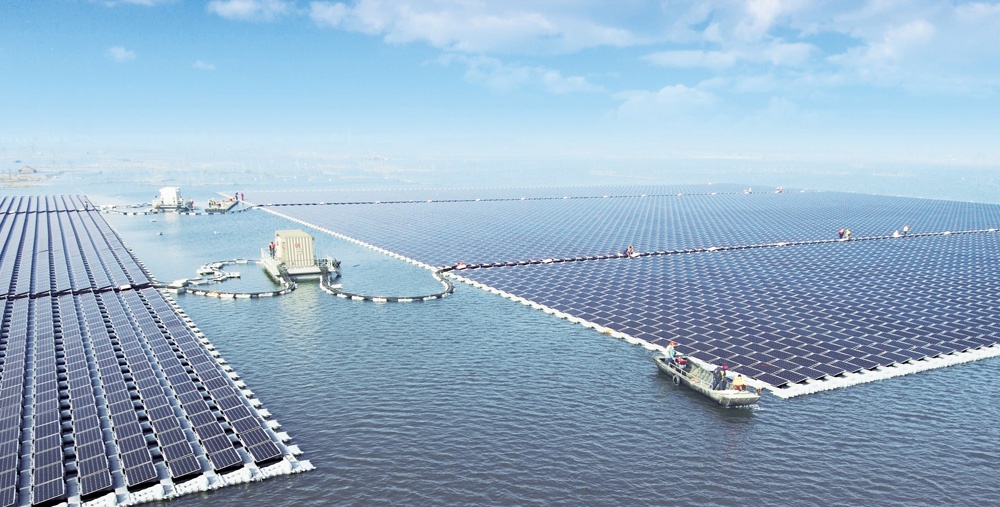 透过适当的设计,光伏也能“风生水起”。中国规模最庞大的水上漂浮式太阳能电站日前于安徽省淮南市潘集完工并网,规模高达40MW。