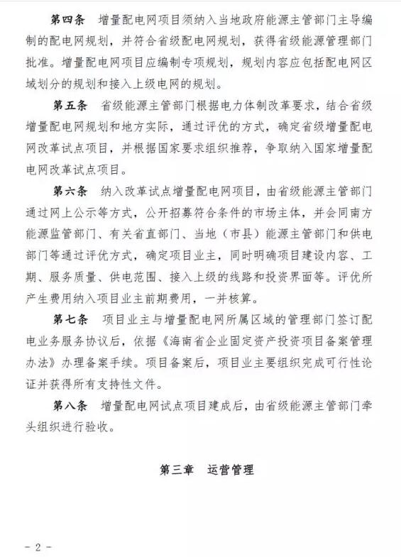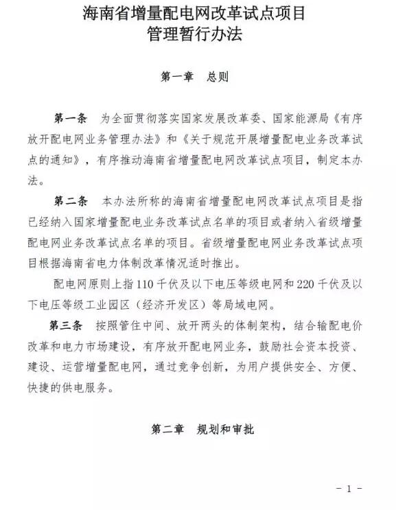 近日,海南发改委发布了关于印发《海南省增量配电网改革试点项目管理暂行办法》的通知。