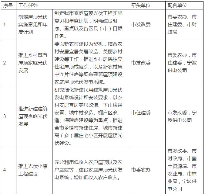 二、宁波市家庭屋顶光伏工程推进工作市级单位任务分解表
