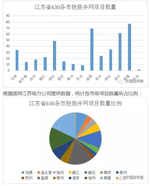 距离630还有还有45天整,经江苏省电网公司整理,江苏省630要并网项目初步统计442个(项目数量按照各市级申报参考和整理)。 坎德拉整理具体比例如下图: