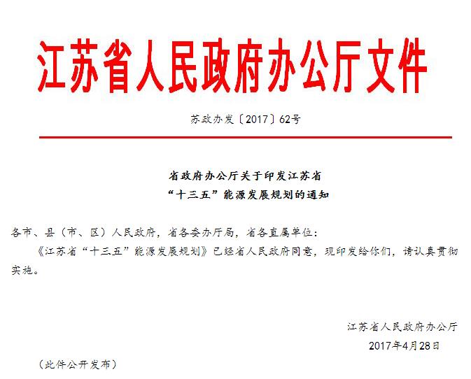 江苏省政府办公厅关于印发江苏省“十三五”能源发展规划的通知