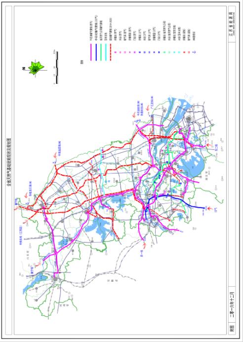 加强干支管网建设。按照“苏南适当加密、苏北形成网络”的思路,配合西气东输、川气东送、俄气南下、海上LNG四大气源通道,建设“五横八纵”干线输气网络。强化干线支撑,重点建设中俄东线江苏段、青岛—南京等输气管道,加快推进南通(海门)—苏州(太仓)过江管道建设。强化跨省联络,重点建设江苏沿海管道及其辐射安徽、河南的横向支干线等,发挥沿海LNG接收基地立足江苏、服务长三角、辐射中部省份的作用。同步推进宁芜复线、启通管道,川气东送配套高淳—溧水、江阴—武进、吴江—昆山、武进—马山支线以及天然气电厂专用支线等支线管网建设,实现天然气管网县区全覆盖。到2020年,累计形成全省天