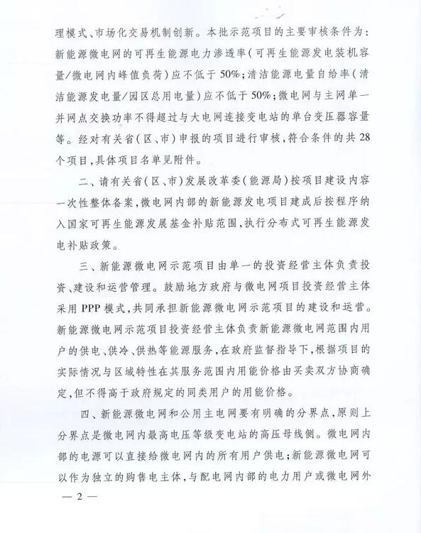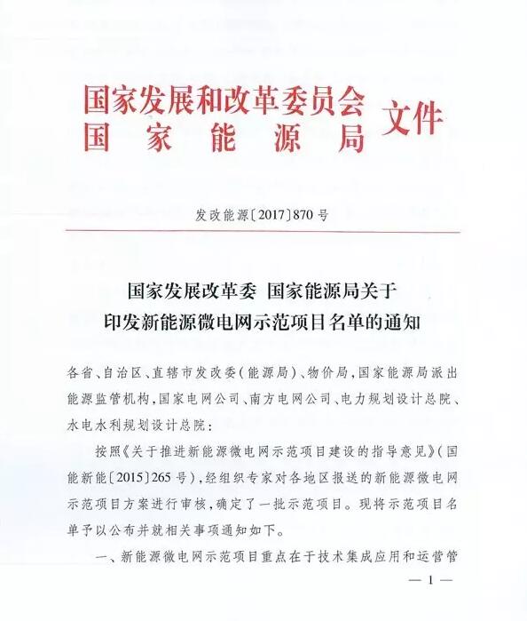 国家发展改革委 国家能源局关于印发新能源微电网示范项目名单的通知